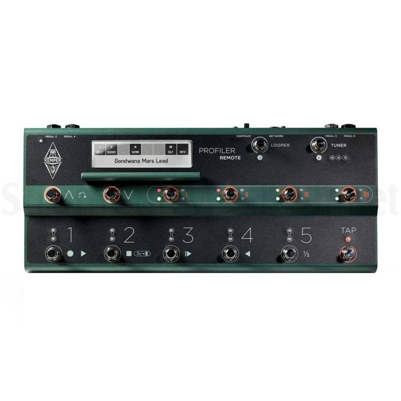Profiler Remote è il comando a pedale per eccellenza per il Profiler. E' stata spesa un enorme quantità di tempo per creare una pedaliera versatile e di semplice utilizzo. La stretta integrazione tra Profiler e Remote consente di controllare, gestire e programmare senza alcuna conoscenza di MIDI o criptiche schede tecniche. L'ampio display retroilluminato è stato progettato per essere guardato da una certa distanza ed il telaio del Remote è costruito come un carro armato. Cinque pulsanti consentono di accedere direttamente a cinque programmi diversi ("Rigs") e interi programmi possono essere selezionati tramite un sistema di banchi. Ci sono tasti dedicati per accedere ad accordatore, tap tempo ed attivare il nuovo, esclusivo Looper Effect. Remote si connette tramite un unico cavo Ethernet al Profiler. Non è richiesta alcuna alimentazione supplementare ed è lungo 7 metri, è anche possibile usare cavi più lunghi. La programmazione necessaria è più facile che aggiungere un nuovo contatto sul telefono cellulare. Basta fare clic per scegliere, assegnare, fatto.