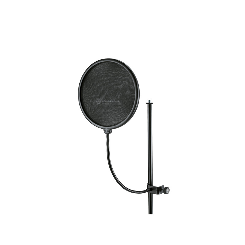 The large Popkiller for modern studio engineering. The large 200 mm nylon screen guarantees optimum sound filtering during studio recording. The Popkiller with flexible gooseneck can be screwed to all standard microphone stands (rod diameter max. 30 mm).