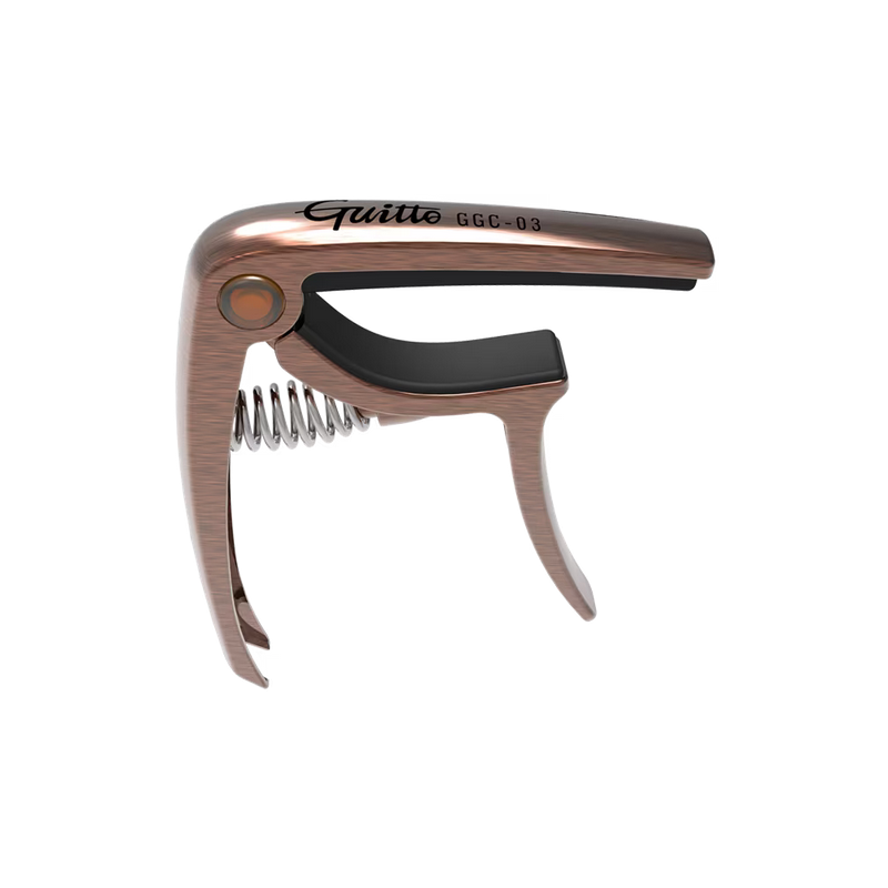 I capotasti di Guitto, versatili e di alta qualità, sono realizzati con materiali pregiati e consentono di trasporre l'accordatura in pochi secondi. Preservano la chiarezza e l'equilibrio dello strumento, mentre le dimensioni compatte e il peso ridotto consentono di tenere il capodastre sempre a portata di mano. Il manico è rifinito con un'apertura per facilitare l'espulsione dei pioli durante il cambio delle corde.