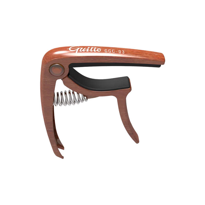 I capotasti di Guitto, versatili e di alta qualità, sono realizzati con materiali pregiati e consentono di trasporre l'accordatura in pochi secondi. Preservano la chiarezza e l'equilibrio dello strumento, mentre le dimensioni compatte e il peso ridotto consentono di tenere il capodastre sempre a portata di mano. Il manico è rifinito con un'apertura per facilitare l'espulsione dei pioli durante il cambio delle corde.