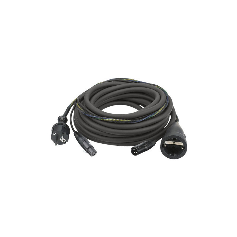 Now finally available as prefabcable: power and signal incorporated in one single cable! No more cable-"mess", just one cable to your active speaker, mixingconsole etc. Currently there are three different models available, all designed for use with audio equipment. All 3 models have xlr-m to xlr-f signal connector and different types of current-connectors. Please note that with a little work these cables can also be used with lightequipment' nevertheless you can expect to see more audio and lightsolutions coming up.