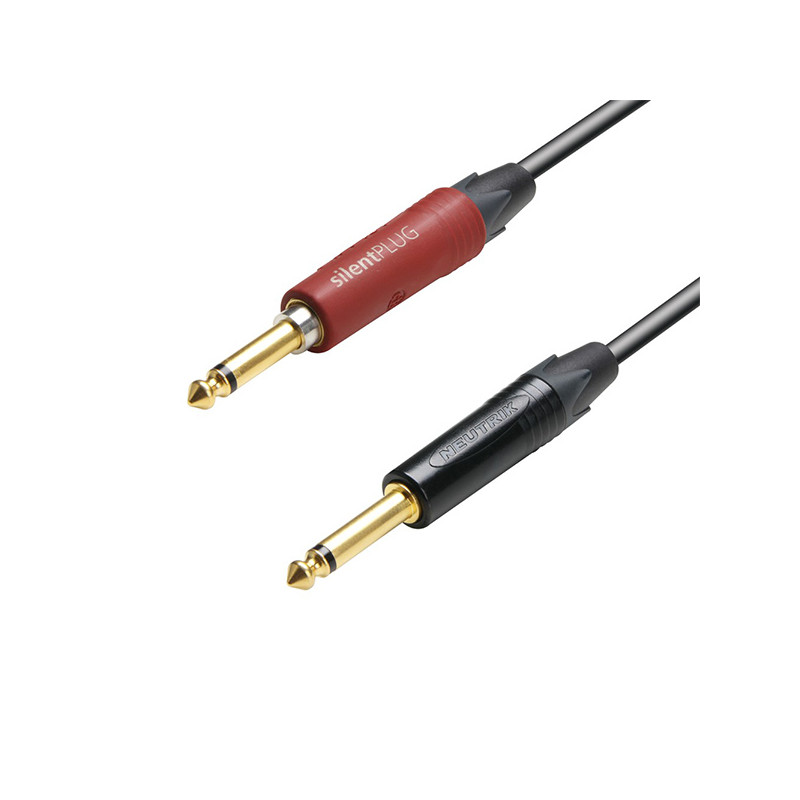 Cavo strumenti dinamico, ad alta definizione, con connettore NEUTRIK © silentPLUG dorato che silenzia il cavo al cambio di chitarra, per evitare crepitii e fischi.