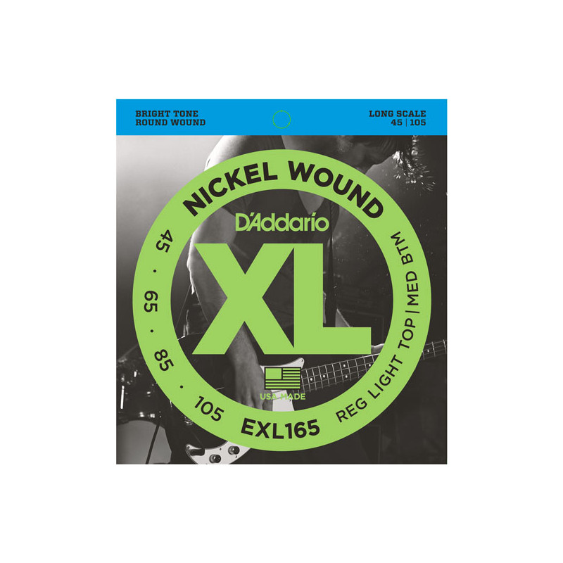 Il set D'Addario EXL165 è un comune set ibrido per basso che combina le corde alte di un EXL170 (.45 e .60) e le corde basse di un EXL160 (.85 e .105). Questo set è la soluzione ideale per tutti coloro che sono alla ricerca della giusta combinazione tra una buona tensione e bassi stretti, decisi e brillanti. Adatto per bassi caratterizzati da una lunghezza della scala che arriva fino a 93 cm.