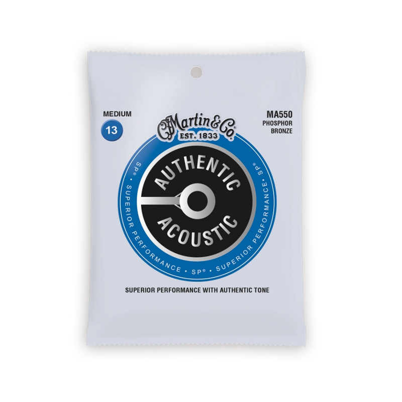 Le corde per chitarra acustica MA550 di Martin & Co della serie Authentic Acoustic SP® sono composte da un avvolgimento in Fosforo Bronzo di alta qualità su filo ultra resistente alla trazione e alla corrosione. Offrono un timbro genuino ed equilibrato, stabililità di accordatura e grande suonabilità. MA550 in scalatura Medium presentano i seguenti diametri: 13-17-26-35-45-56