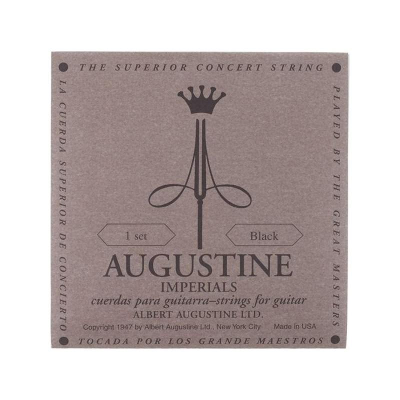Le corde Augustine Imperial Black Gold Label abbinano i bassi della serie classica a tensione nromale con i cantini Gold, dal suono particolarmente cristallino e squillante. Sono corde da concerto, eccellenti per le chitarre classiche che rispondono bene ad un tocco più leggero e delicato.