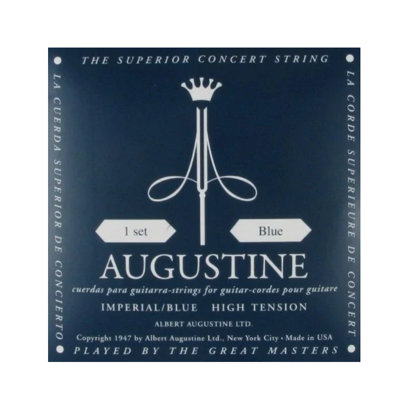 Augustine Imperial Blue Gold Label è un set di corde da chitarra classica a tensione forte che abbina i bassi classici della serie Blue con i cantini Gold. Questo set di corde da concerto è eccellente per le chitarre classiche che rispondono bene al tocco, donando un attacco veloce.