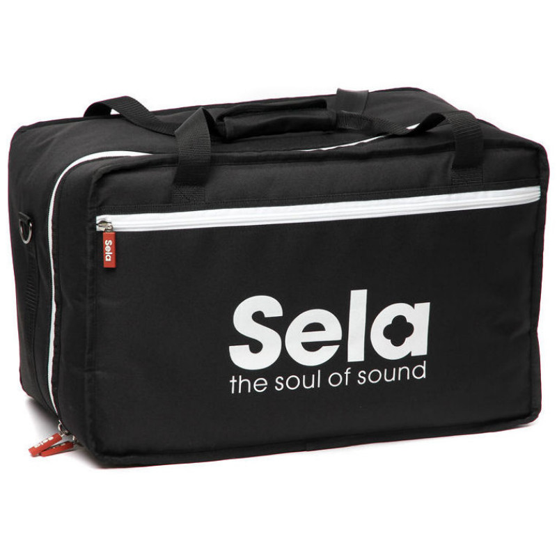 Sela 005 Cajon bag black, material: tear-resistant nylon, high quality zip closure, extra strong bottom, side pocket, carrying straps and removable rucksack shoulder straps, suitable for all cajons up to 11.8" x 12.2" x 19.7".