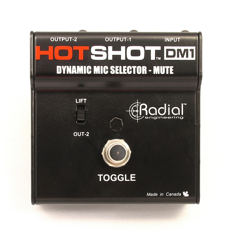 Switcher a pedale che se schiacciato mette in Mute il segnale che va al sistema PA di sala e lo indirizza agli in-ears monitors o all'intercom.Non necessita di alimentazione. Per mic. Dinamici.