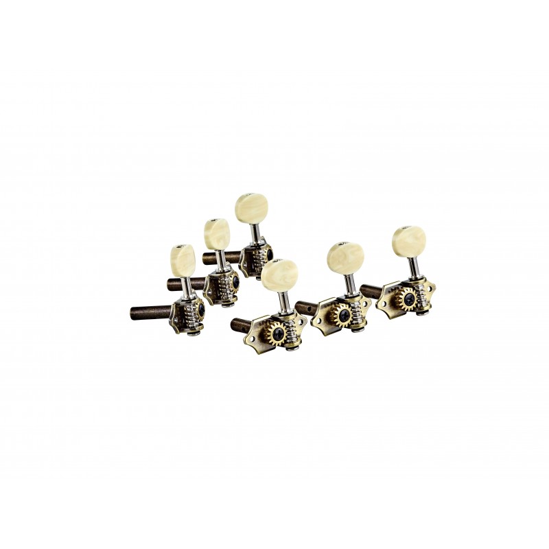 OTMVG-BS Meccanica aperta stile vintage per paletta di tipo classico (con fori a croce). Formato 3 + 3. Finitura ottone anticato con maniglia bianca.