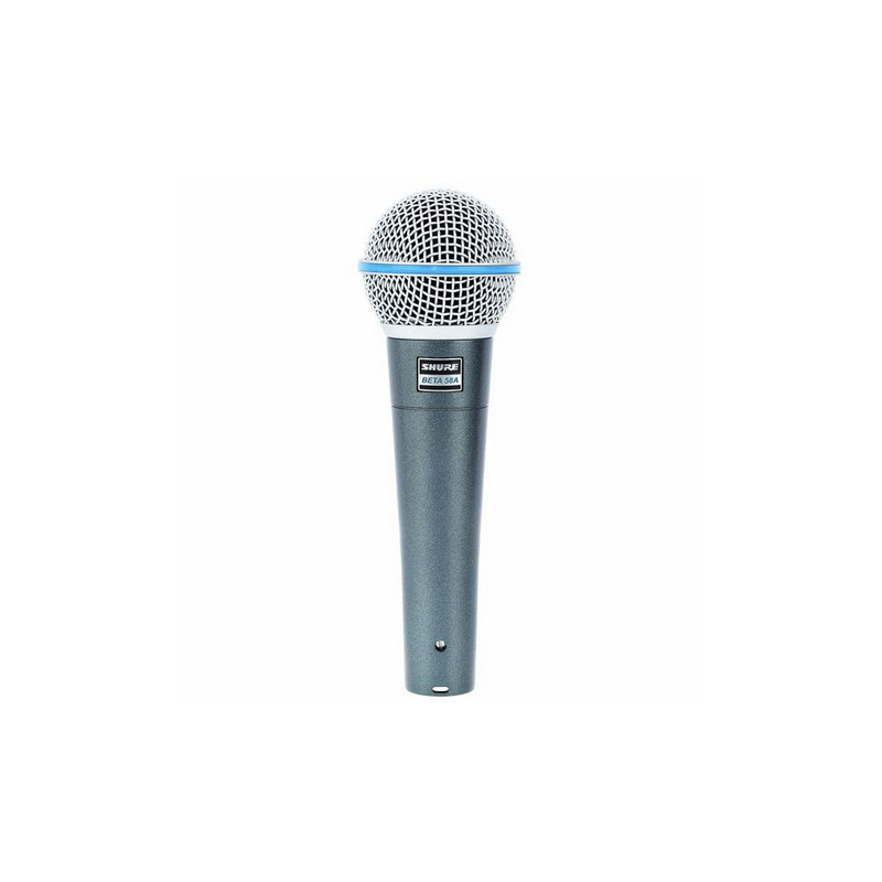 Lo Shure Beta 58A è un microfono dinamico supercardioide per voce ad elevato segnale di uscita progettato per il rinforzo sonoro live professionale e per gli studi di registrazione. Mantiene un modello polare supercardioide su tutta la gamma di frequenza. Questo assicura un elevato guadagno prima del feedback, il massimo isolamento da altre sorgenti sonore, ed una minima colorazione del suono fuori asse. IL Beta 58A ha una risposta in frequenza modellata idela per la ripresa ravvicinata della voce. Le superbe prestazioni di questo microfono non sono influenzate dal maneggiamento grazie alla sua robusta costruzione, all’efficiente supporto antivibrazioni ed alla griglia in acciaio rinforzata.