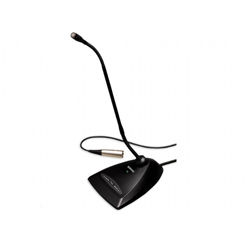 Microfono a collo d'oca da 457 mm, con base integrata, interruttore, senza capsula. Questi microfoni della serie Microflex sono una linea completa di microfoni con collo d’oca totalmente regolabile e capsule a condensatore intercambiabili. Le capsule sono disponibili in tre versioni che si differenziano per il diagramma polare che può essere cardioide, supercardioide od omnidirezionale e sono state progettate per essere sostituite velocemente in qualsiasi modello della linea Microflex. Offrono un’elevata sensibilità, un’ampia risposta in frequenza ed una riproduzione accurata del suono che le rendono idonee per molteplici applicazioni in centri conferenza, aule di giustizia e sale di culto. I microfoni Microflex con collo d’oca sono disponibili in varie versioni con lunghezze e tipi di montaggio diversi. Quattro modelli sono dotati di interruttore e relativo LED di segnalazione, caratteristica esclusiva dei microfoni Shure Microflex. I modelli con base integrata, MX412D e MX418D, sono dotati di un pulsante a membrana che può essere programmato per funzioni diverse quali: premi per parlare, premi per silenziare, attiva/disattiva. L’ingresso e l’uscita logica permettono di interfacciarli con altri dispositivi esterni come mixer microfonici automatici, relè di silenziamento diffusori o commutatori per telecamere.