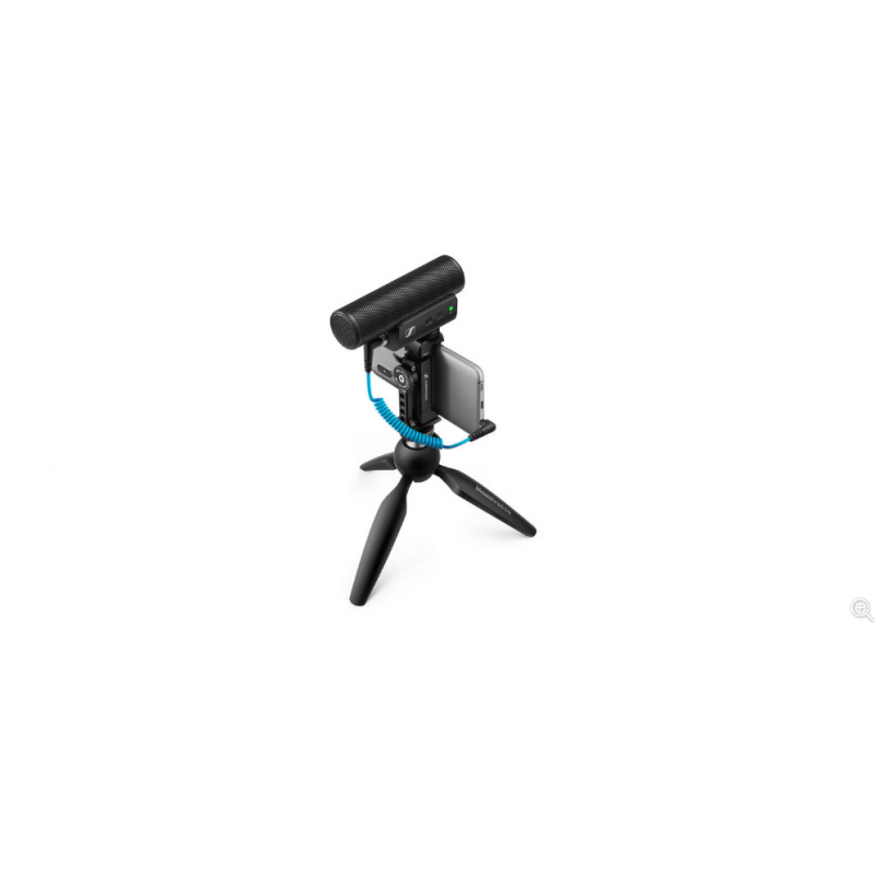 Sennheiser MKE 400 MKII Mobile Kit- Kit includes MKE 400 MKII, Manfrotto PIXI Mini Tripod and Sennheiser Smartphone Clamp, MKE 400 MKII: condenser camera microphone, polar pattern: supercardioid, integrated windscreen, internal suspension, frequency response: 50 Hz - 20 kHz, switchable sensitivity: -23 / -42 / -63 dBV / Pa, max. SPL 132 dB SPL, 2 - 10V supply voltage required, switchable low-cut, 3.5 mm headphone output with volume control, impedance headphone output: 16 Ohms, Power supply: battery (2x AAA / LR03 size, 1.5 V), dimensions: 126 x 67 x 37 mm, weight: 94 g, color: black, incl. spiral cable 3.5 mm TRS to 3.5 mm TRS, spiral cable 3.5 mm TRS to 3.5 mm TRRS, MZH 400 fur windscreen, storage bag for MKE 400, 2x AAA-battery, quick guide and safety guide, Manfrotto PIXI mini tripod: height: 13.5 cm, closed height: 18.5 cm, front / side tilt: +-35°, thread: 1/4" screw, quick positioning and locking of the ball head by push button, Sennheiser smartphone clamp: material: aluminum, rubber grips, 180 degree locking wheel allows positioning in portrait or landscape mode format,