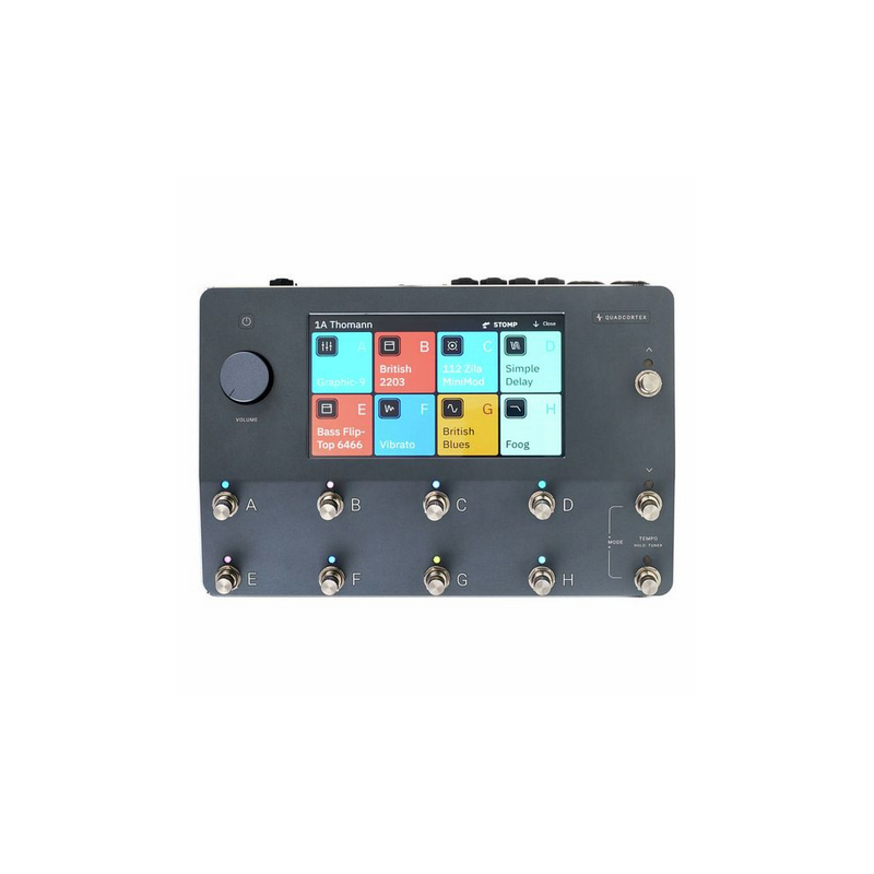 L'elegante layout del Quad Cortex è guidato da un touchscreen a colori da 7" e 11 footswitch. Quad Cortex offre anche ingressi e uscite configurabili, che possono essere salvate indipendentemente per ciascuno dei suoi 2 preset utente, insieme al MIDI e audio tramite USB per suoni registrati plug-and-play da producer.