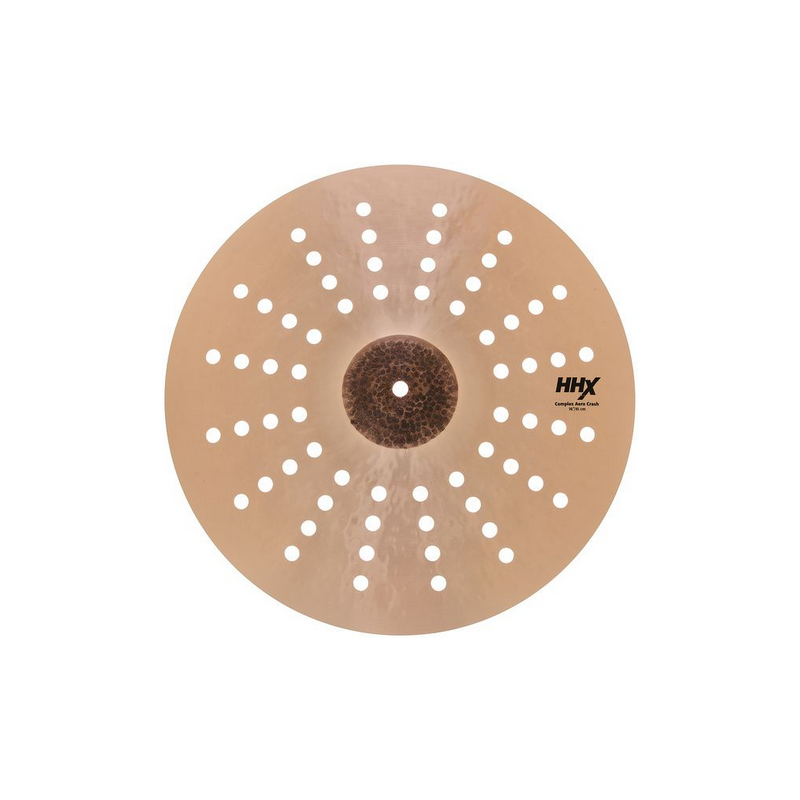 Piatto Crash - Dimensioni: 16" - Materiale: Bronzo B20 - Combinazione di martellatura HH e HHX - Campana martellata - Il design a fori aerodinamici conferisce al Complex Crash, altrimenti pieno e caldo, frequenze leggermente più alte e un carattere leggermente sibilante