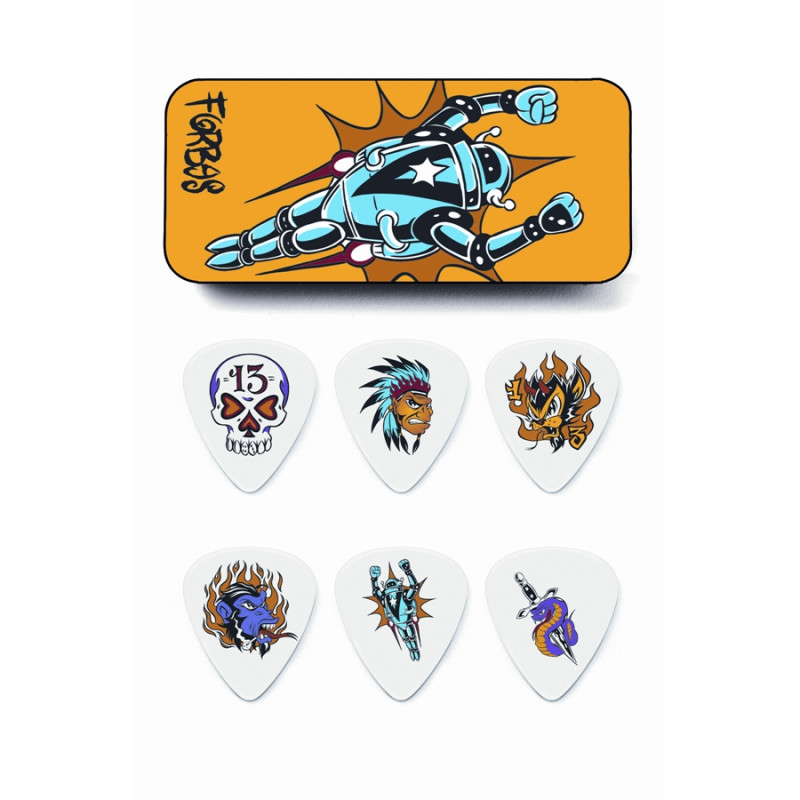 La serie Blackline di Dunlop combina plettri di alta qualità con le sue grafiche particolari disegnate dall' illustratore Alan Forbes, per avere sia un valido plettro che un pezzo da collezione.