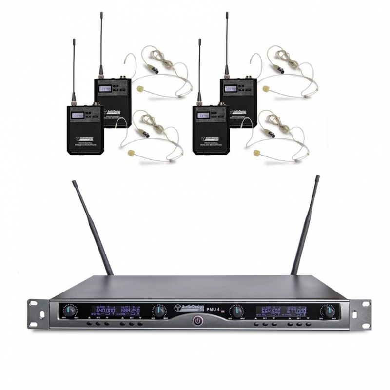 AUDIODESIGN PMU 440T KIT WIRELESS: RICEVITORE 4CH+4 BODYPACK - 4 HEADSET BEIGE