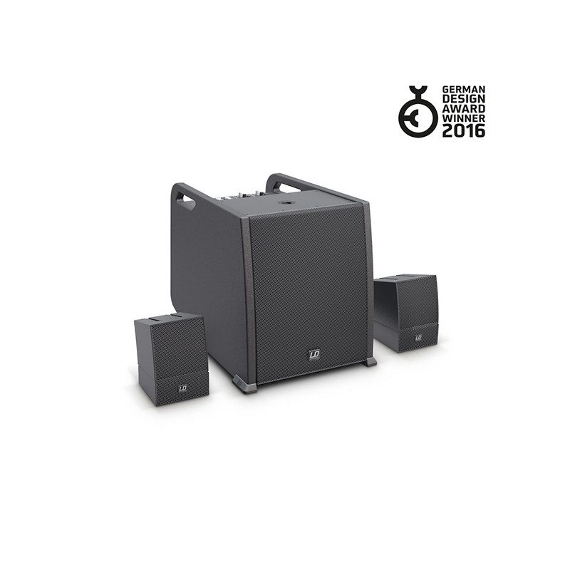 The two satellites are operated via SmartLink® adapters. The elements, only 12 x 12 cm in size, are equipped with LD System's own WaveAhead® technology' one 4" and three 1" drivers provide a coherent and extremely detailed playback with high pressure and dynamics.