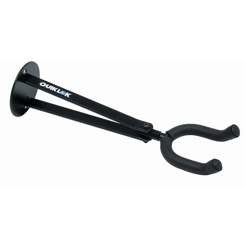 Sostegno a muro per chitarra con forcella curva e supporto extralungo da 24 cm. Progettato per sollevare la chitarra oltre la forcella. La forcella può ruotare di 180° ed essere regolata a destra o sinistra di un angolo qualsiasi.