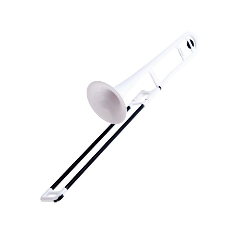 pBone trombone tenore piccolo e leggero (pesa solo 800 g) in plastica di colore bianco, foro ø 0.500, più facile tenere (impugnatura ergonomica), molto più durevole rispetto a qualsiasi trombone in ottone, diapositiva in fibra di vetro.