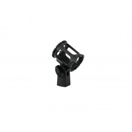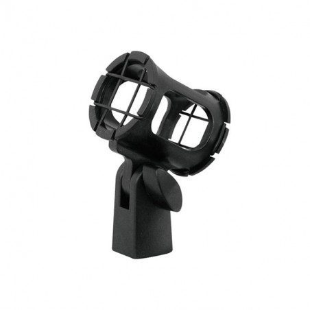 Portamicrofono elastico per microfoni con un design sottile, d = 18 - 25 mm, con filettatura 16 mm standard (5/8 ") e inclinazione regolabile.