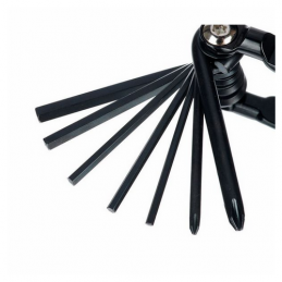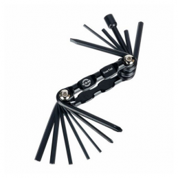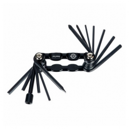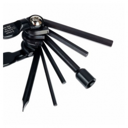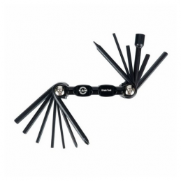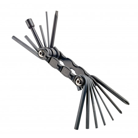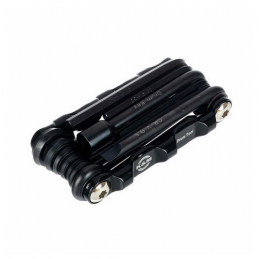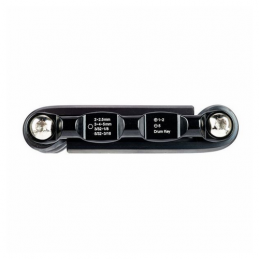 Uno strumento versatile per batteria con varie chiavi a brugola nei modelli in pollici e metrici, nonché vari cacciaviti e chiavi di accordatura.