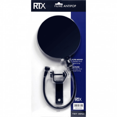 AP01 di RTX è il filtro antipop con diametro 16 cm facile da agganciare direttamente sull'asta microfonica.