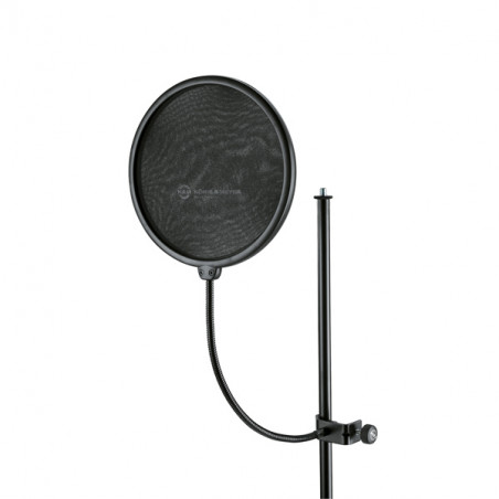 The large Popkiller for modern studio engineering. The large 200 mm nylon screen guarantees optimum sound filtering during studio recording. The Popkiller with flexible gooseneck can be screwed to all standard microphone stands (rod diameter max. 30 mm).