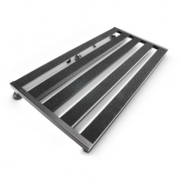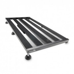 Pedaliera universale in alluminio per l'applicazione di tutti i pedali per gli effetti disponibili in commercio. Le traverse, l'altezza e l'inclinazione della pedaliera possono essere regolate individualmente. Le traverse sono già dotate di velcro (ratina) e la pedaliera viene fornita con una quantità sufficiente di nastro di velcro. Sul lato inferiore, la pedaliera dispone di 4 pratici ganci di fissaggio e di elastici compresi nella fornitura che consentono di fissare in modo semplice degli apparecchi periferici, come ad es. un alimentatore.