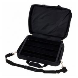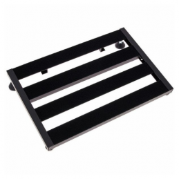 Pedaliera universale in alluminio per l'applicazione di tutti i pedali per gli effetti disponibili in commercio. Le traverse, l'altezza e l'inclinazione della pedaliera possono essere regolate individualmente. Le traverse sono già dotate di velcro (ratina) e la pedaliera viene fornita con una quantità sufficiente di nastro di velcro. Sul lato inferiore, la pedaliera dispone di 4 pratici ganci di fissaggio e di elastici compresi nella fornitura che consentono di fissare in modo semplice degli apparecchi periferici, come ad es. un alimentatore.