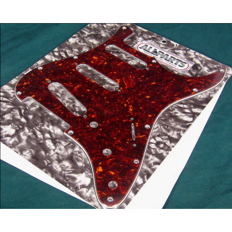 Battipenna per Stratocaster colore Tortoise (tartarugato) a 3 strati (B/W/T) a 11 fori. Finitura lucida con schermatura conduttiva in lamina sul retro.
