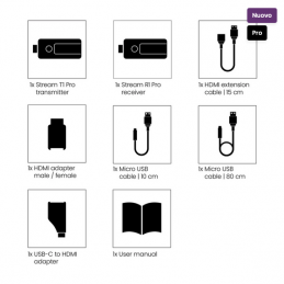 Lo Stream S1 Pro è un cavo HDMI 'senza fili'. Usa questo 'cavo HDMI wireless' se vuoi collegare il tuo laptop o PC senza fili con un display o un proiettore. Ideale per le presentazioni in sala conferenze. Un cavo HDMI separato non sarà più necessario. Funziona anche con i computer portatili con solo una connessione USB-C (MacBook, Chromebook). Nessuna app, software o connessione WiFi necessaria.