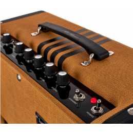 Il combo Delta King 12 cattura il tono dell'amplificatore Supro vintage che ha contribuito a scolpire il suono del primo Rock & Roll elettrico e dell'invasione britannica degli anni '60. Il suo finale valvolare in Classe A single-ended offre le stesse caratteristiche tonali grezze e una straordinaria sensibilità al tocco delle sue controparti della metà del secolo, il tutto fornendo 15 watt di potenza valvolare 6L6 attraverso il nostro altoparlante DK12 da 12 pollici personalizzato. Le caratteristiche includono guadagno front-end tramite un preamplificatore valvolare 12AX7, una funzione boost guidata da FET, modalità Pigtronix FAT high-gain, EQ a 3 bande, volume master e riverbero a molla analogico originale personalizzato.