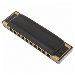Armonica diatonica in REb, 20 voci, corpo in plastica nero e guscio esterno anch'esso placcato nero.