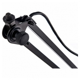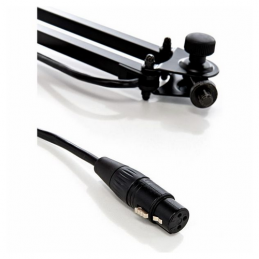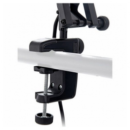 Our popular, smooth-running microphone desk arm with 3/8" or 5/8" thread connector for sound studios and multimedia work stations with a new innovative table clamp. Easy to position and suitable for microphones to max. 0.8 kg. The 5 m long microphone cable with a 3 pin XLR plug connector is included in the delivery. Having a clamping range of 0 to 48 mm the clamp is suitable for a wide spectrum of mounting. The stable metal construction with high quality plastic inserts guarantees secure and strong hold. The cleverly shaped clamping parts allow the clamp to be used on smooth surfaces and round-shaped tubes. The microphone arm can also be fixed with the table flange 23855 available as an optional extra.
