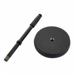 Combination floor and table stand. Heavy black cast-iron base with sound absorbing rubber insert. Height-adjustable 2-piece tubing.