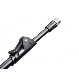 MS 4322 B è un'asta microfonica di fascia alta con tubo dallo spessore importante, rivestimento a polvere nero e altezza massima di 169 cm. Il treppiede estremamente stabile è dotato di una campana in zinco pressofuso e piedini ripiegabili grandi in acciaio con coperture in gomma resistenti per la protezione della superficie di appoggio. La posizione e l'inclinazione del portamicrofono estraibile si possono regolare in modo preciso grazie a 2 viti di fissaggio presenti sul supporto. Possiede una chiusura rapida e una lunghezza massima di 88 cm, per un posizionamento flessibile del microfono. L'impugnatura per regolare l'altezza di MS 4322 B, ergonomica e resistente, e le manopole a vite sono realizzate in ABS ad alta resistenza con un rivestimento soft touch antiscivolo in termoplastica per un comodo utilizzo. Inoltre il controdado progettato appositamente consente un montaggio rapido e stabile del supporto microfono senza strumenti. MS 4322 B è fornito con un ulteriore kit di anelli di codifica neri' altri anelli sono disponibili in numerosi colori per una chiara personalizzazione.