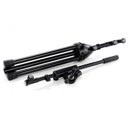 Three-piece telescoping shaft. Metal, non-marring height-adjustment mechanisms, complete with boom arm.
