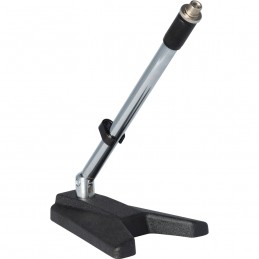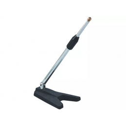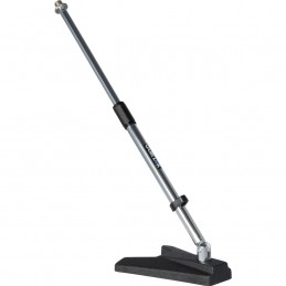 Asta corta regolabile in altezza ed angolazione con base triangolare in acciaio e stelo snodato. Può essere usata a terra per riprendere batterie, amplificatori, o come asta da tavolo per sale conferenza