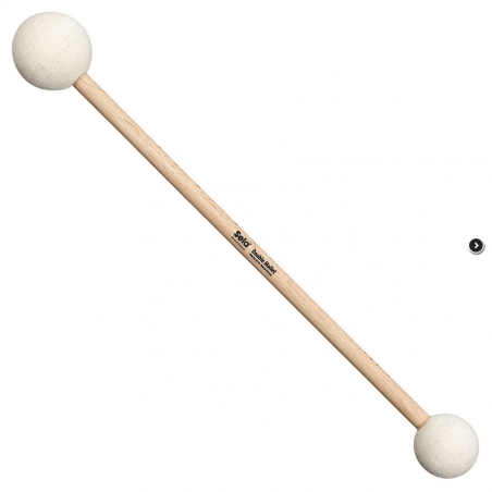 Le ciotole da canto e i gong dispiegano tutto il loro potenziale in combinazione con il SELA Double Mallet, con un attacco chiaramente definito e uno spettro di toni completo. Con i timpani, il SELA Double Mallet produce un tono potente e molto definito. A seconda dell'estremità con cui si suona lo strumento, risonanza e volume possono essere dosati in modo eccellente.