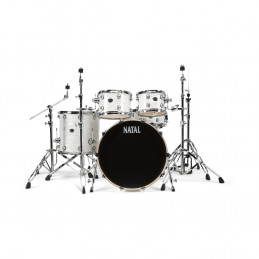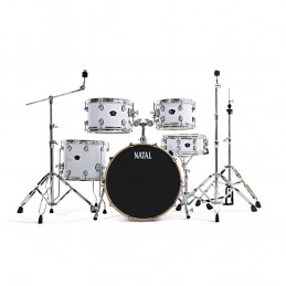 Batteria junior di dimensioni ridotte. Legno di pioppo. Grancassa di 16''x11'', tom aereo di 8'x6' e cassa di 10'x5', piatto 10'' con supporto. Comprende scatola di montaggio, pedale, sella e un paio di bacchette.
