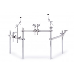 Il fondamento della batteria elettronica EM53T è un sistema Icon e-Rack progettato su misura che offre una flessibilità totale nel posizionamento di tamburi e piatti e li blocca saldamente in posizione. Il rack, splendidamente cromato, si fonde con i bracci cromati dei tom e i supporti per i piatti ed è perfetto per un piccolo palco, ideale per l'ambiente di culto e a suo agio in un'arena. L'Icon e-Rack offre spazio per crescere quando si espande il kit con altri tamburi e piatti.