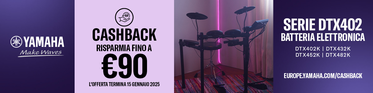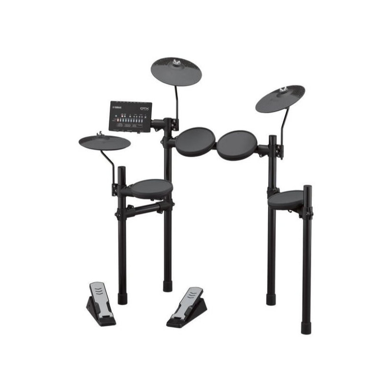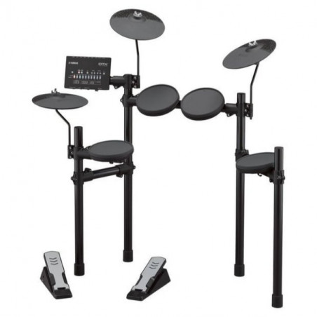 Yamaha DTX402K e-drum set, DTX402 drum module with 287 sounds, 10 user kits, metronome, 10 coaching programs, 1/4" jack headphones/output, stereo 1/8" jack Aux In, USB for connections via MIDI, input on bass drum pedal for an additional single zone drumpad, Set Configuration: 4x 7,5" single zone snare/tom pad, 1x KU100 Silent Kick pedal, 3x 10" single zone beckenpad, 1x hi-hat controller, drumrack, cables, tuning key, delivery without sticks, throne and headphones,