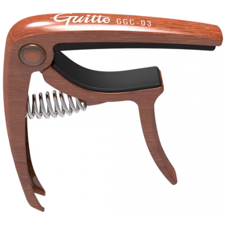 I capotasti di Guitto, versatili e di alta qualità, sono realizzati con materiali pregiati e consentono di trasporre l'accordatura in pochi secondi. Preservano la chiarezza e l'equilibrio dello strumento, mentre le dimensioni compatte e il peso ridotto consentono di tenere il capodastre sempre a portata di mano. Il manico è rifinito con un'apertura per facilitare l'espulsione dei pioli durante il cambio delle corde.