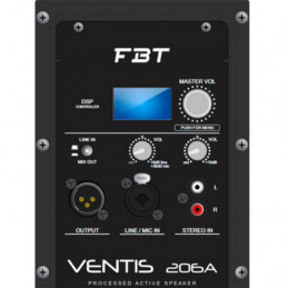 Per la gamma VENTIS, qualità e flessibilità sono le parole d'ordine. Basate su una potente combinazione di driver B&C a compressione e su woofer FBT ad escursione lunga, i modelli 115, 112 e 110 sono a due vie, design bass reflex alloggiati in case in multistrato di betulla da 15mm. Un design full-grille sostenuto da un panno acustico con trattamento speciale offre lo stile caratteristico per il quale FBT è noto, mentre trombe completamente rotabili a direttività costante garantiscono una copertura precisa. La potenza per i modelli VENTIS attivi viene fornita per gentile concessione di un modulo di amplificazione switching Made in Italy appositamente progettato. Le basse frequenze sono fornite da un efficiente amplificatore RMS 700W (full bridge) in classe D, che funziona con una bassissima THD. Per lo stadio HF, una performance da 200W RMS viene fornita da un design in Classe H / AB meticolosamente costruito.
