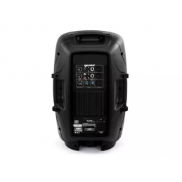 Diffusore bi amplificato class AB a 2 vie 500 W RMS sui bassi e 250 W RMS sugli alti 1.500 W di picco totali – 45–20.000 Hz – tweeter da 1" – woofer da 12" – 2 ingressi line/mic XLR, minijack e RCA con regolazione del volume + 1 ingresso microfonico XLR e jack con regolazione del volume – equalizzatore a due bande e regolazione separata del volume di un'eventuale sorgente collegata direttamente al diffusore – in/out per collegamenti in cascata – cabinet in abs full grill