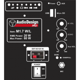 La AudioDesign Pro di Reggio Emilia presenta una nuova generazione di diffusori attivi a batteria, con lunga durata di utilizzo. La M1 7W/L presenta 1 microfono wireless in dotazione e tutte le funzioni multimediali: Radio in FM, lettore USB o micro SD, collegamento Bluetooth, ingresso Aux stereo (jack 3,5 mm), ingresso per microfono a filo, telecomando in dotazione.