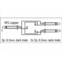DAP FL32 CAVO AUDIO 2xJACK 6.3 MONO to 1xJACK 6.3 MONO, 1.5m