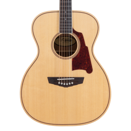 La nuova Premier Tammany porta gli stili più sottili dell'Art Deco della New York di metà secolo in una classica acustica OM, caratterizzata da un gessato superiore a contrasto, battipenna Scalini di ispirazione archtop e hardware Antique Bronze. Offrendo una qualità straordinaria a un prezzo accessibile, la Tammany presenta un top in abete massello, fondo e fasce in mogano laminato e un preamplificatore Fishman Sonitone a bordo. Il manico in mogano, straordinariamente confortevole e sormontato da una tastiera in palissandro, garantisce un'eccellente suonabilità e un suono caldo e ben bilanciato. Con una sottile finitura satinata, la Premier Tammany offre un tono dolce e cantilenante che si apre meravigliosamente nel tempo. Disponibile nei colori Natural, Aged Burst e Caramel Burst.