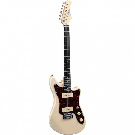 La chitarra elettrica Camaro VR 2-90 di Eko Guitars nella colorazione Cream spicca per la configurazione dei Pickup P-90 gestibili con il selettore toggle a tre vie e per la paletta abbinata alla tonalità crema del corpo.