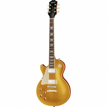 Epiphone’s new Inspired by Gibson Collection proudly presents the Les Paul Standard 50s! This guitar lovingly recreates the feel and tone of 1950s era Les Pauls. Epiphone’s long friendship with Mr. Les Paul began in 1940 when Les built one of the world’s first solid-body electric guitars while working nights at the original Epiphone factory in Manhattan. Les’ first solid-body guitar, nicknamed “the Log”, would go on to inspire the Les Paul Standard, what many consider the greatest electric guitar ever made. The guitar is crafted with a Mahogany body, Maple cap (AAA veneer on figured tops), bound 50s shaped Mahogany neck with long neck tenon, Indian Laurel fingerboard with classic trapezoid inlay, Epiphone's new Vintage-Deluxe tuners, a pair of critically acclaimed Epiphone ProBucker™ humbuckers, and gold Top Hat knobs with dial pointers. Available in Metallic Gold, Vintage Sunburst, and Heritage Cherry Sunburst full-gloss finishes. This Epiphone Inspired by Gibson Original model also has the Kalamazoo headstock, rolled neck for a comfortable feel, GraphTech® NuBone™ nut, era-appropriate wiring, and CTS pots. Optional hardshell or EpiLite Case is available.